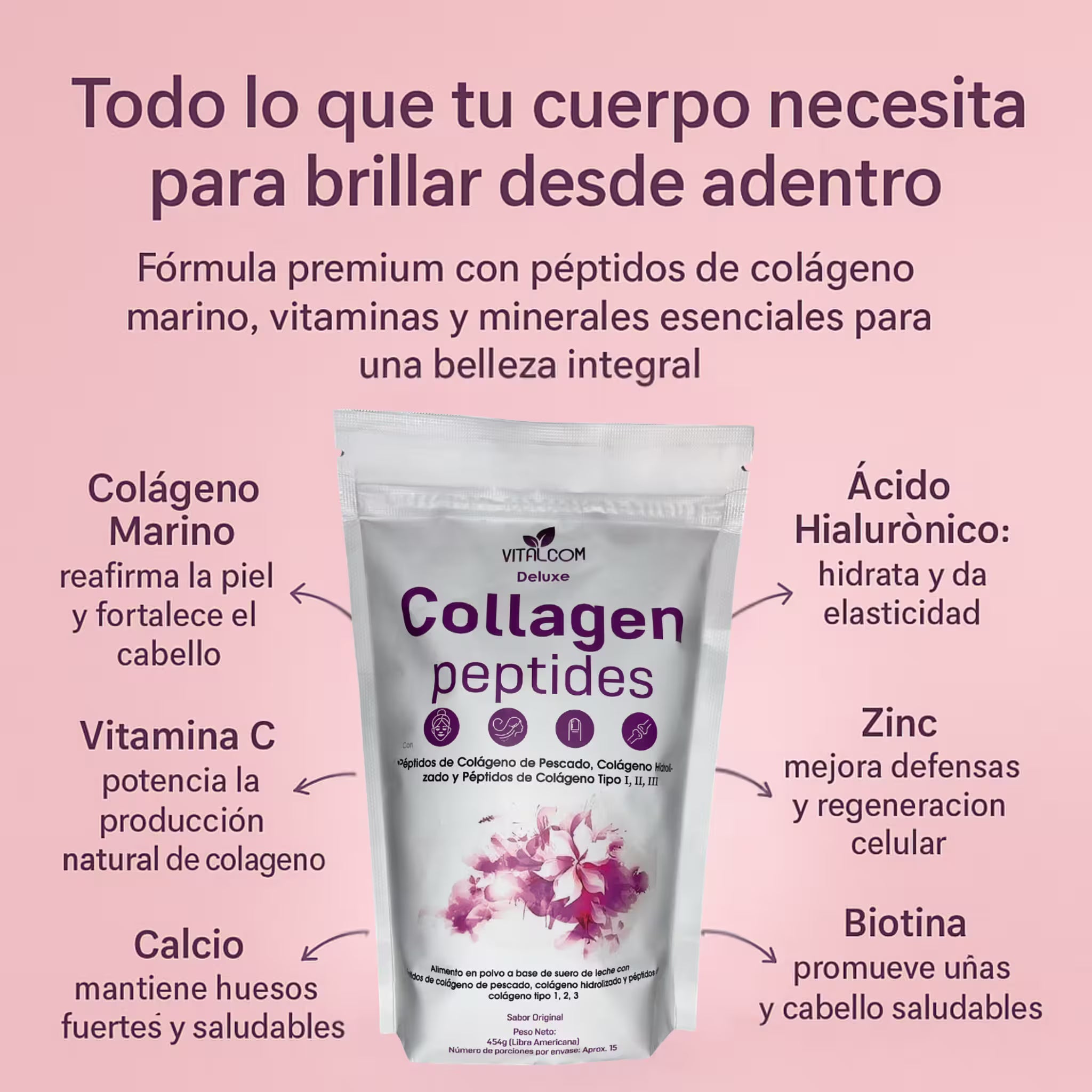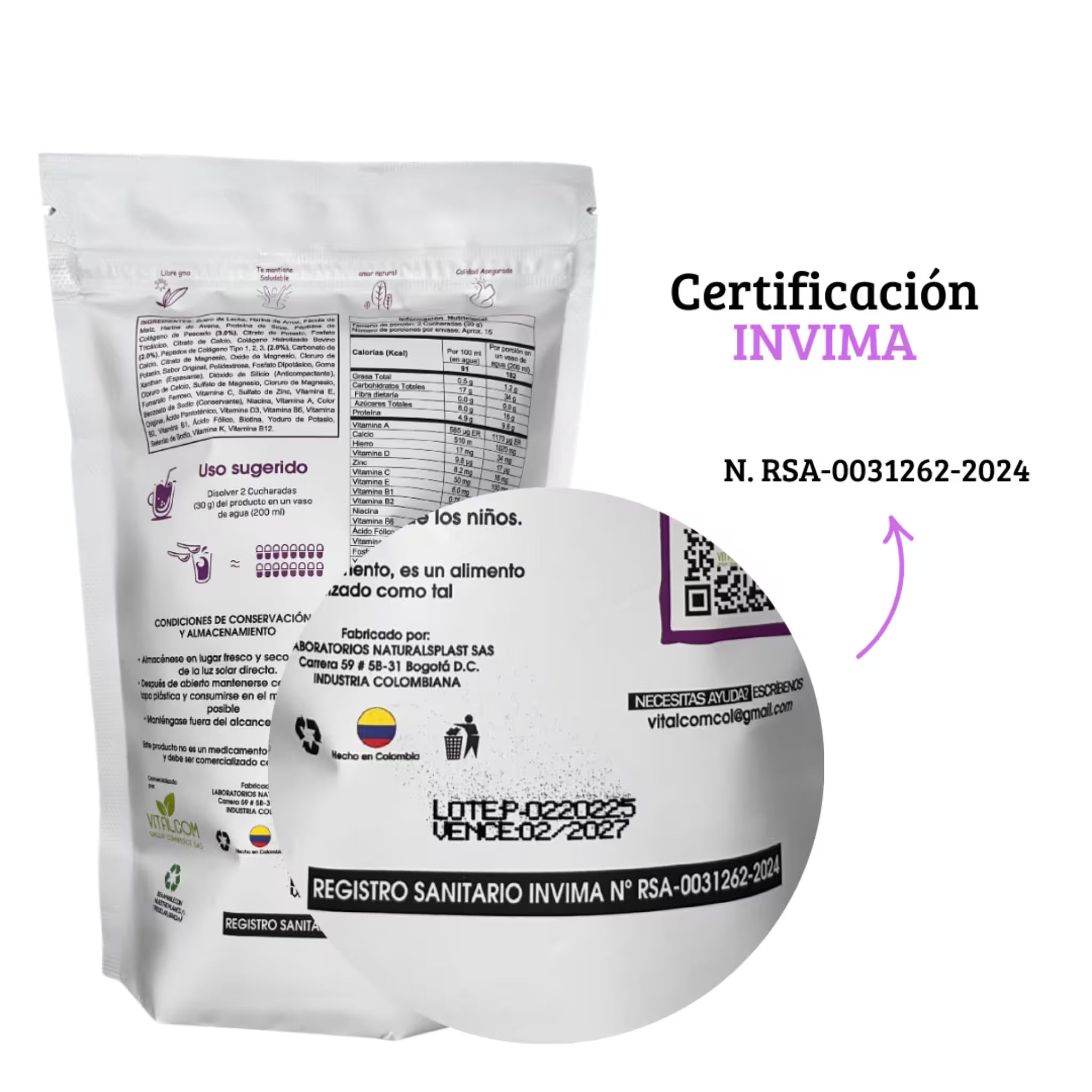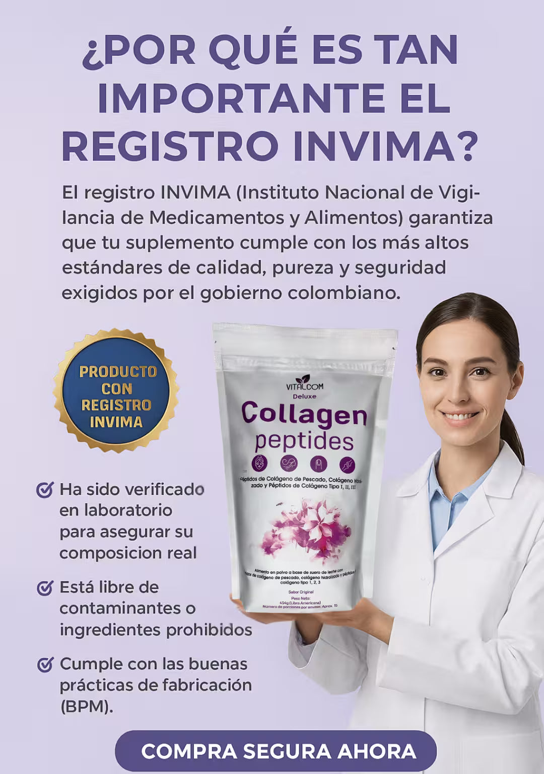 Colageno Peptides - VITALCOM + LIBRO + REGISTRO INVIMA PARA CONSUMO SEGURO Y CERTIFICADO