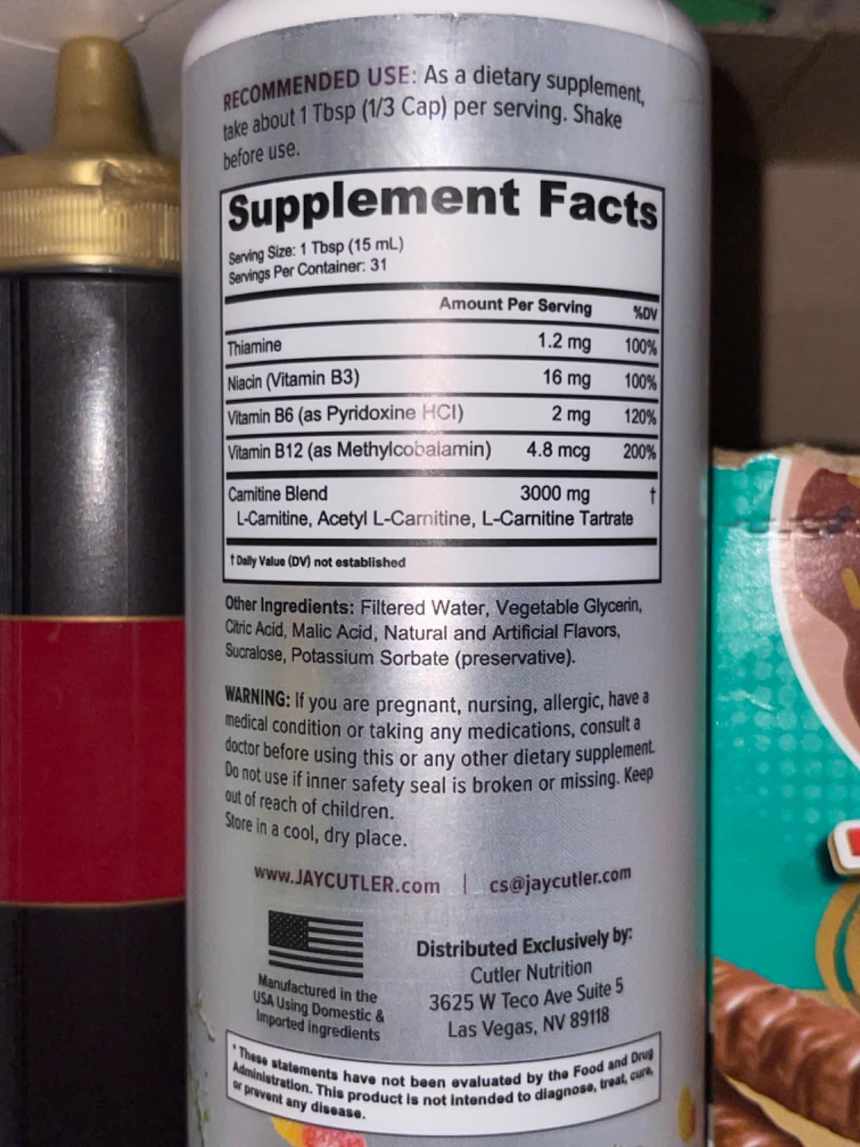 Carnitine Liquid 3000 -Cutler Nutrion IMPORTADO 🇺🇸